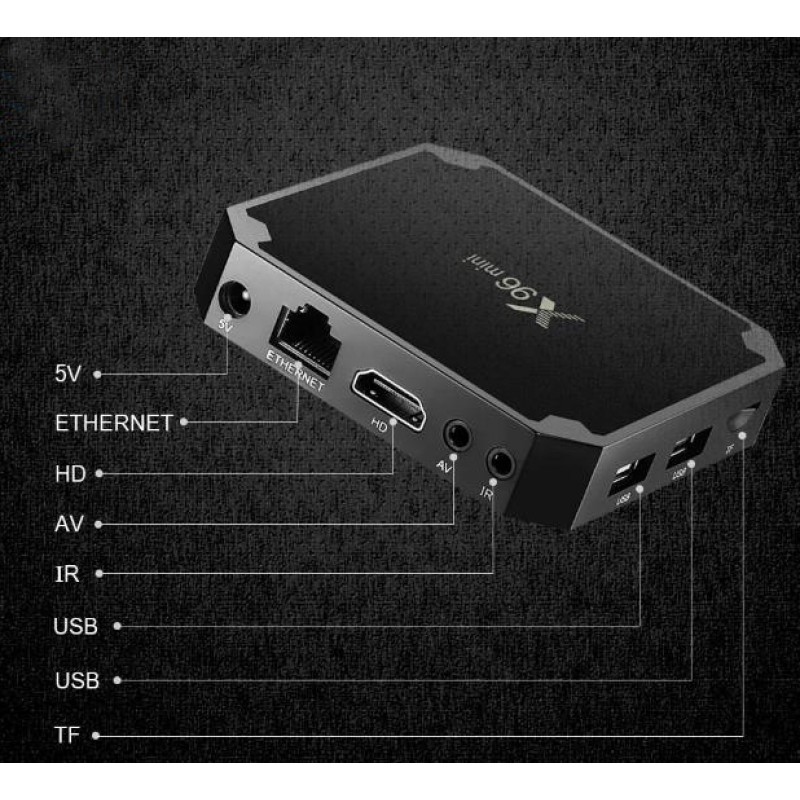Ця модель X96 mini стала набагато компактнішою. Тут виробник вибирав оптичний вихід для акустики, яку рідко використовували. Крім розмірів це зменшило і вартість приставки.